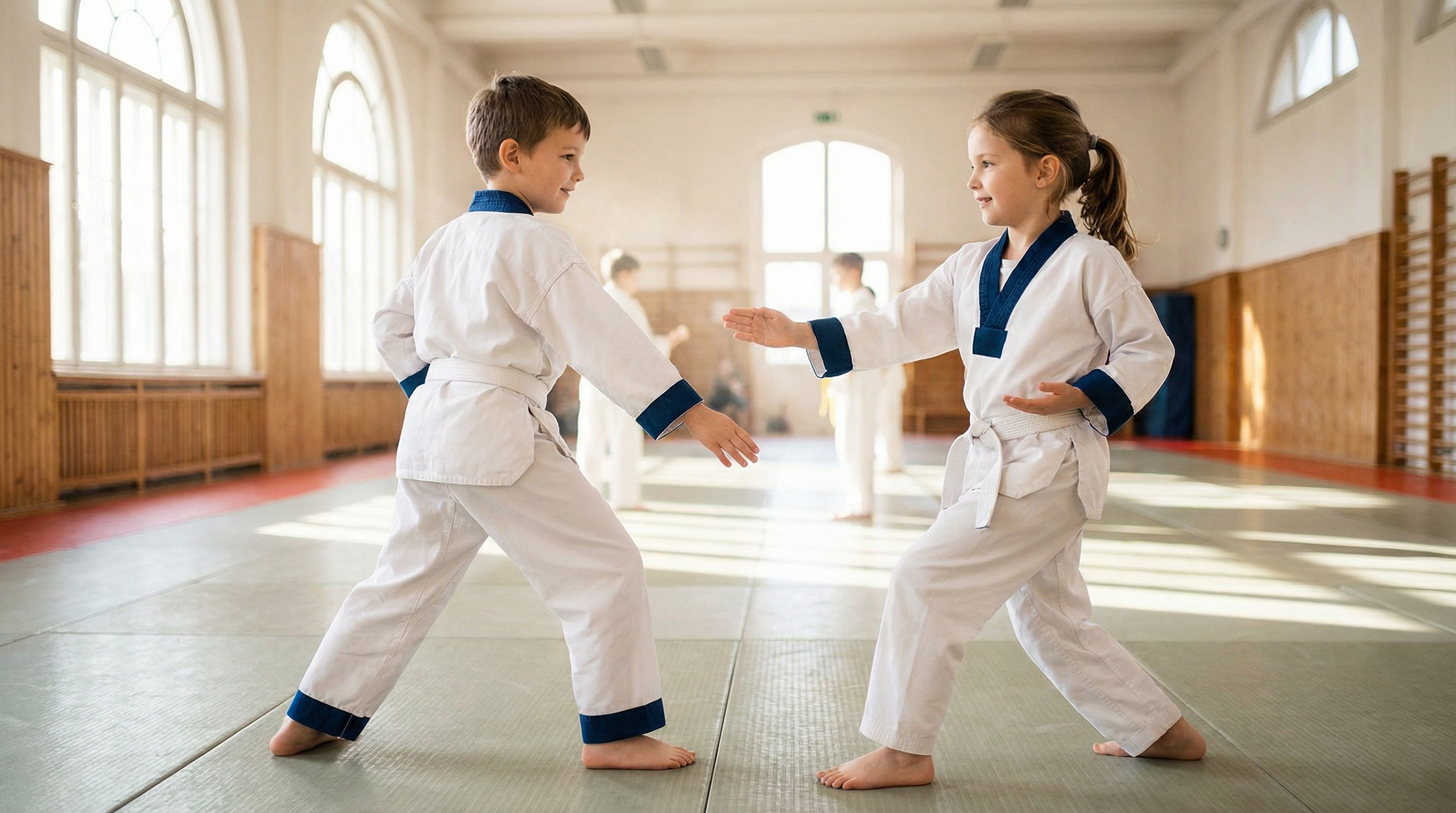 Für Kinder von 6 bis 8 Jahren legen wir besonderen Wert darauf, ihre Selbstbehauptung und Selbstverteidigung gezielt zu stärken. Unsere zertifizierten Trainer vermitteln Disziplin, Respekt, Werte und Konzentration auf eine motivierende und altersgerechte Art. Durch abwechslungsreiche und fordernde Übungen entwickeln die Kids ihre motorischen und konditionellen Fähigkeiten weiter und lernen dabei fortgeschrittene Grundtechniken.